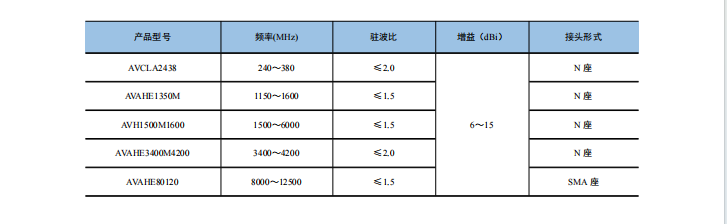 AVAHE 系列轴向模螺旋天线系列相对于平面螺旋天线,带宽较窄,但具有更高的增益和更窄的波瓣,可应用在对增益有特殊要求的场合。